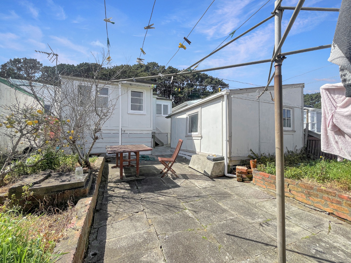 – The laundry is located outside in a standalone building and comes complete with a washing machine and clothes dryer