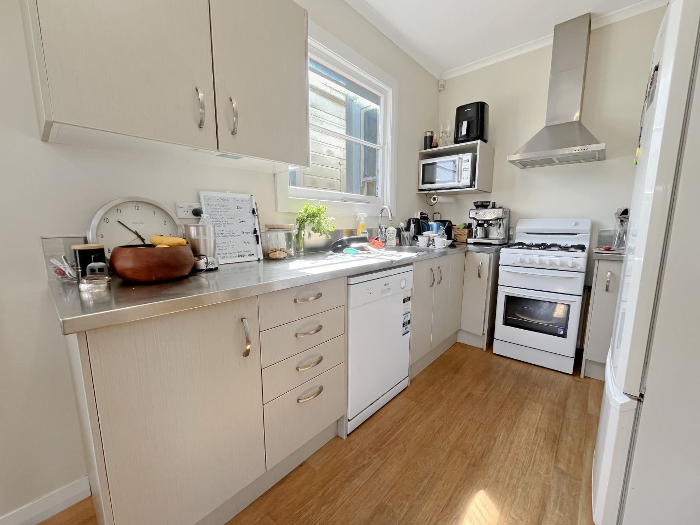 – The kitchen comes with a gas oven, dishwasher and fridge
