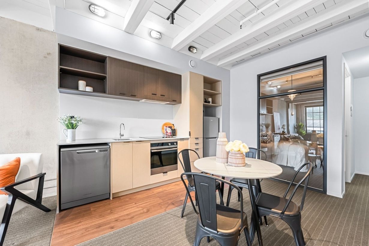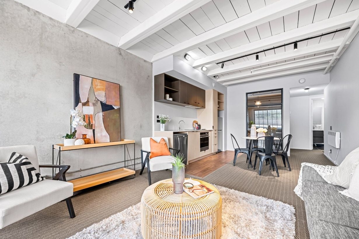 This stylish apartment combines character and convenience in one of Petone’s most sought-after locations. Featuring exposed concrete walls, high-stud ceilings, and large steel-framed windows, the space is filled with natural light and contemporary charm.