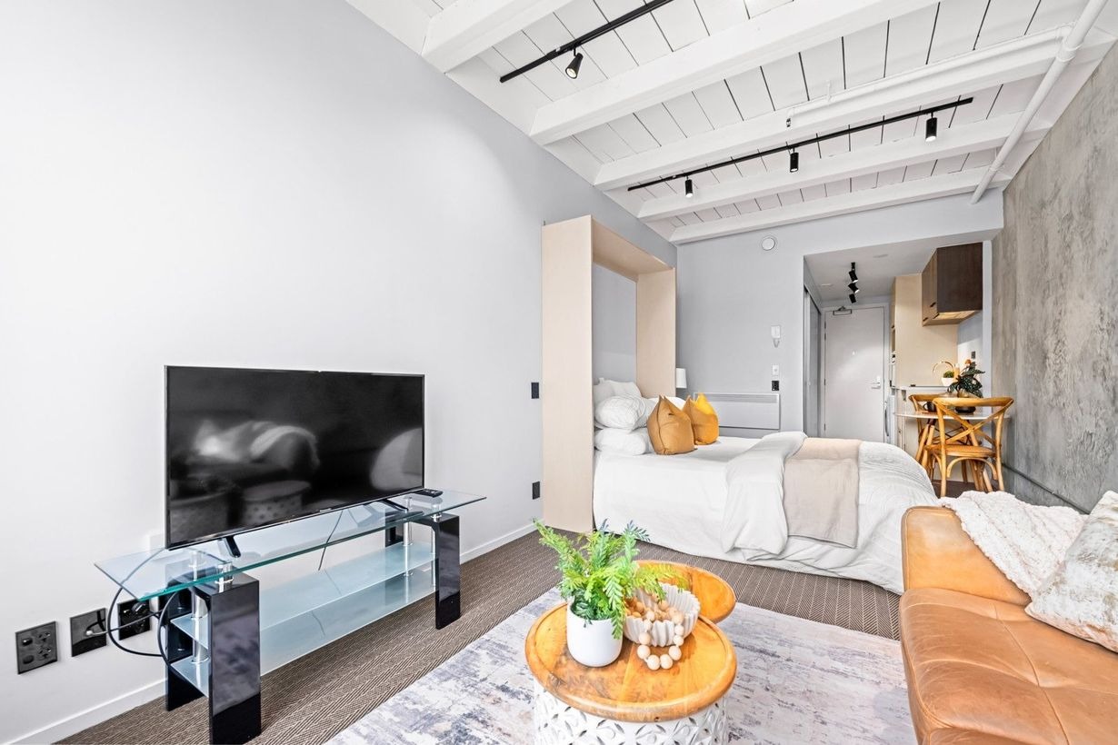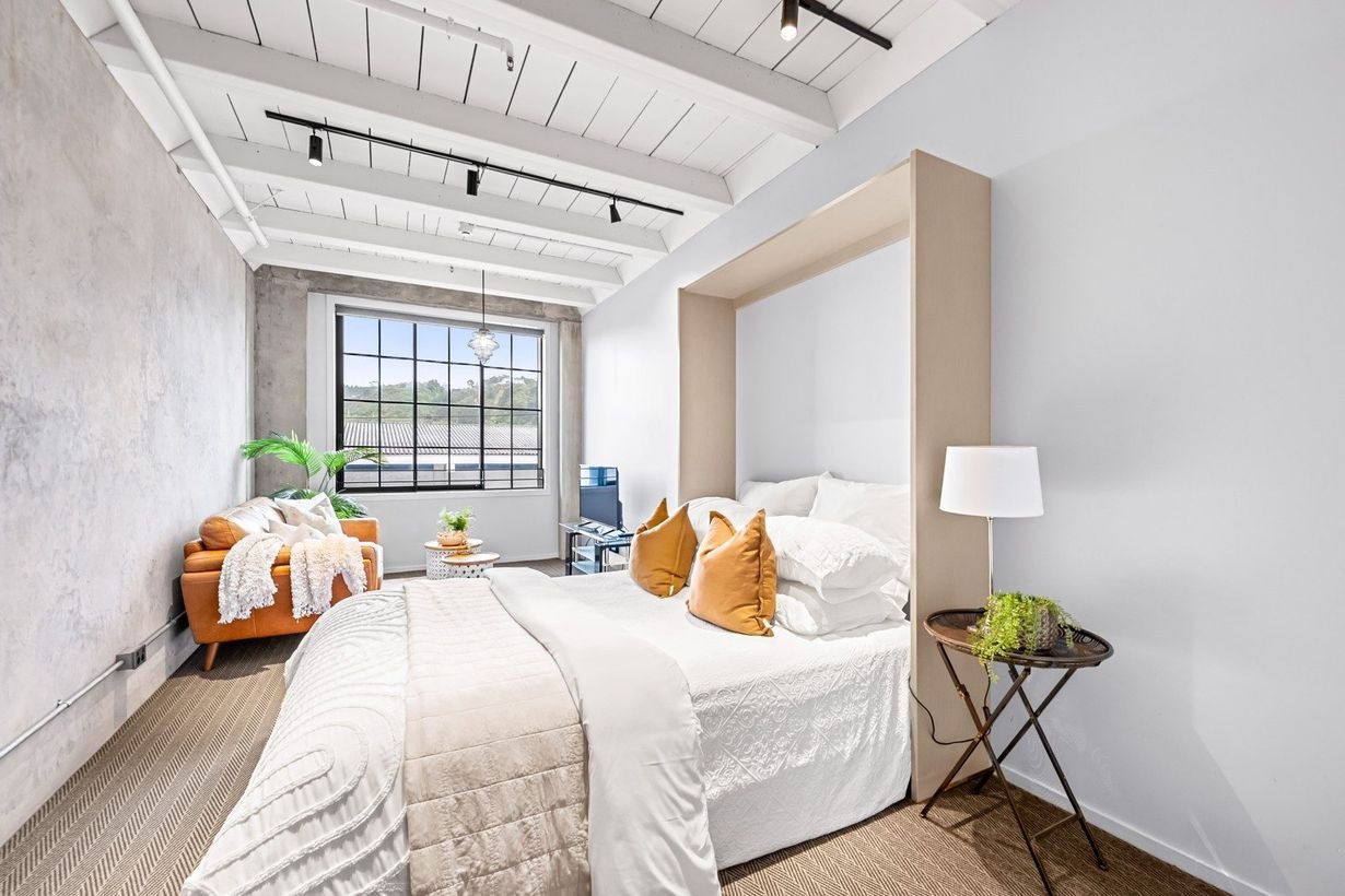 This modern studio apartment is well designed, light and bright throughout with a functional layout. It comes with a drop-down queen bed, leather couch and TV so it is set for you to move straight in. The kitchen is fully equipped with top quality whiteware and appliances.