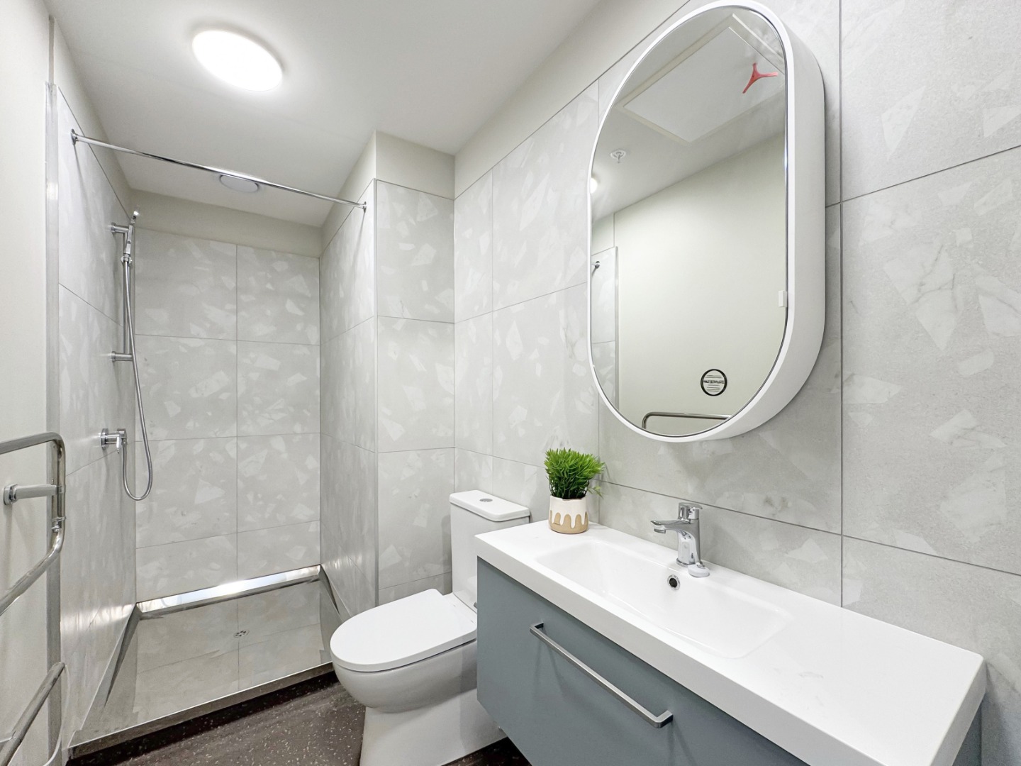 – One bathroom with tiled bath and quality fixtures.