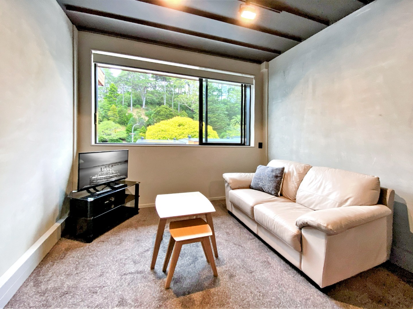 Spacious and private studio apartment with eastern aspect overlooking the Wellington Botanical Gardens. This apartment is well designed to ensure the best of apartment living – this includes features such as a queen-sized drop down bed system allowing for space maximisation, large sliding picture windows to allow for natural light, self-contained kitchen and laundry.