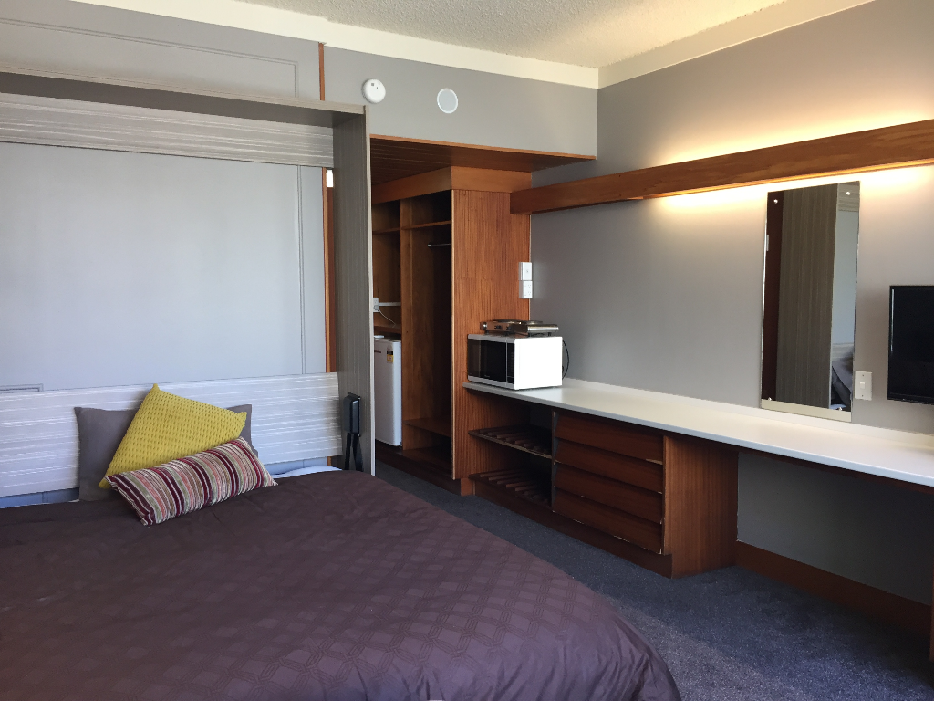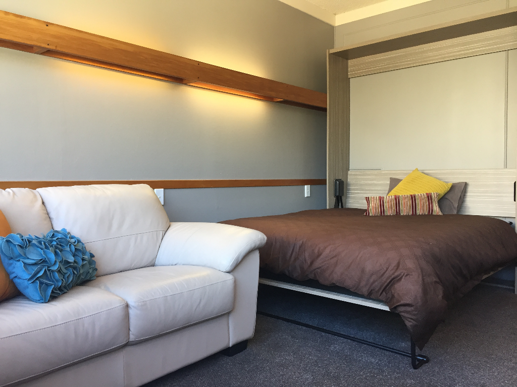 Positioned on the 2nd floor, this spacious studio apartment is located across the road from the Wellington Botanical Gardens. Light and bright throughout the apartment is set for you to move straight in. It comes with a queen-sized drop-down bed, leather couch, TV, fridge, microwave, and double cooking hob. The building also has the added amenities of a communal kitchen and laundry.