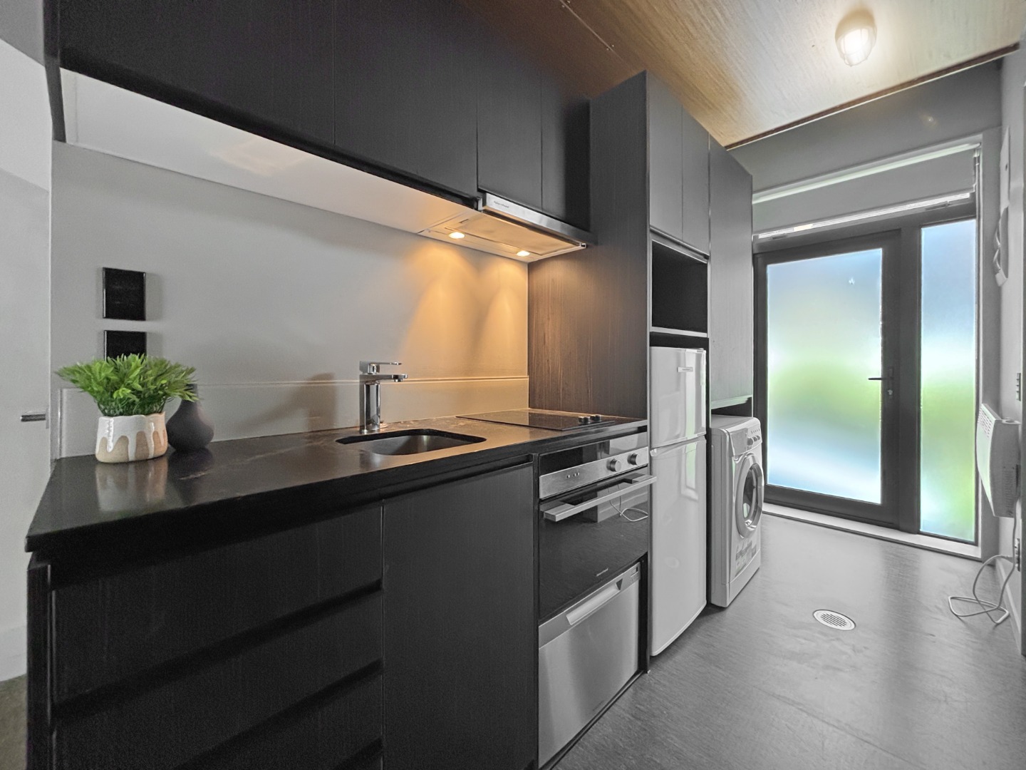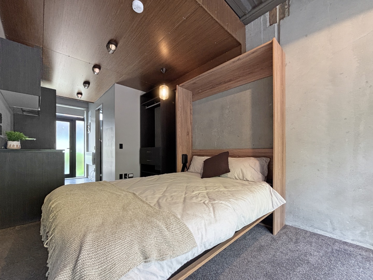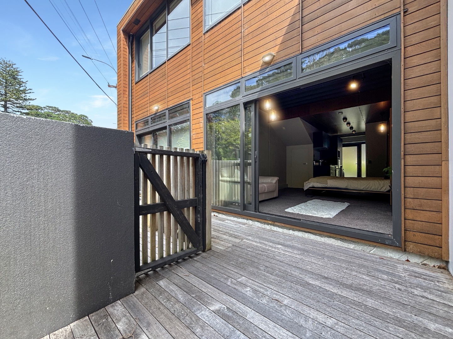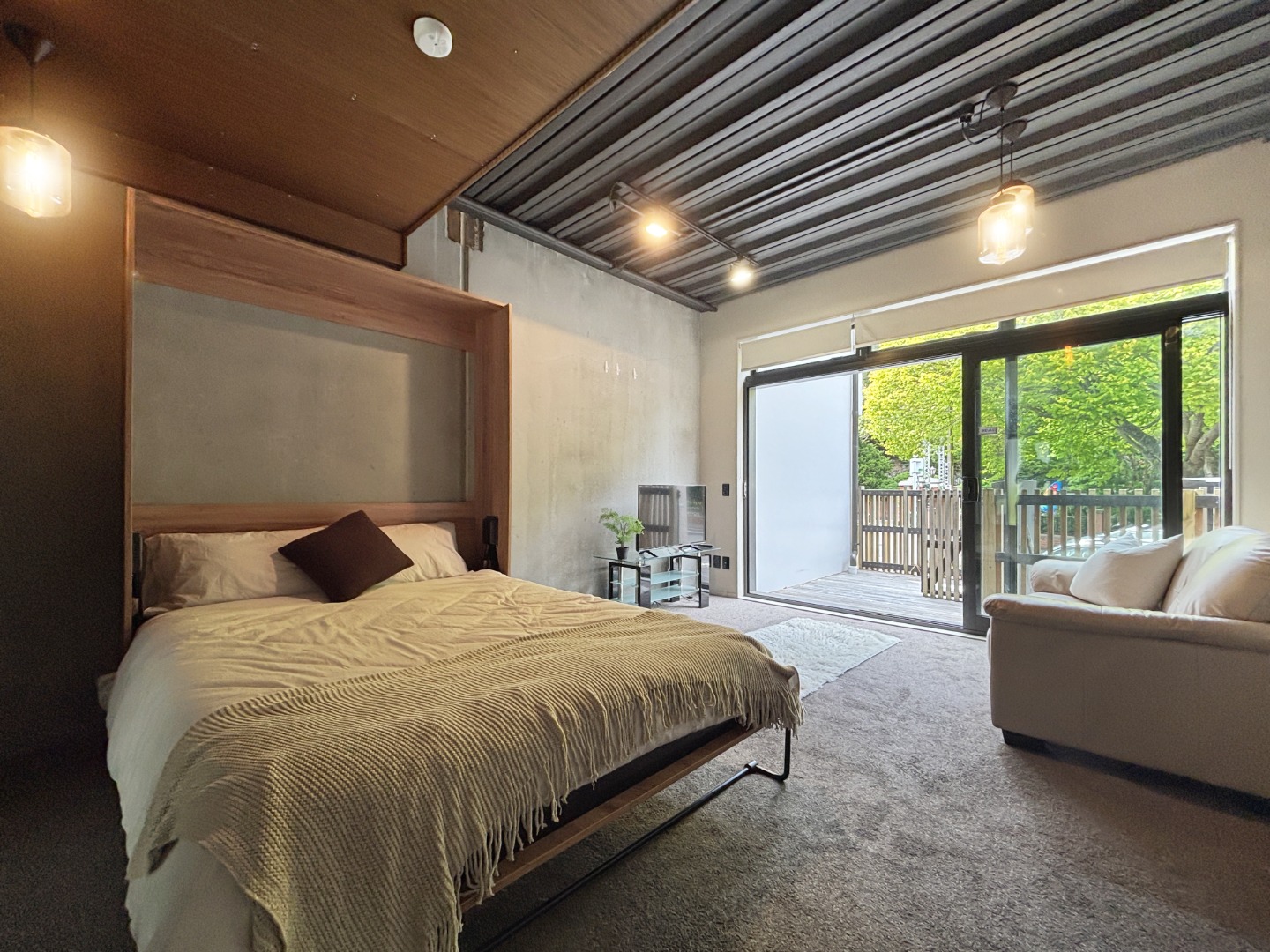 Spacious and private ground floor studio apartment with excellent flow to the large deck and overlooking the Wellington Botanical Gardens. This apartment is well designed to ensure the best of apartment living – this includes features such as a queen-sized drop down bed system allowing for space maximisation, large windows to allow for natural light, self-contained kitchen and laundry.