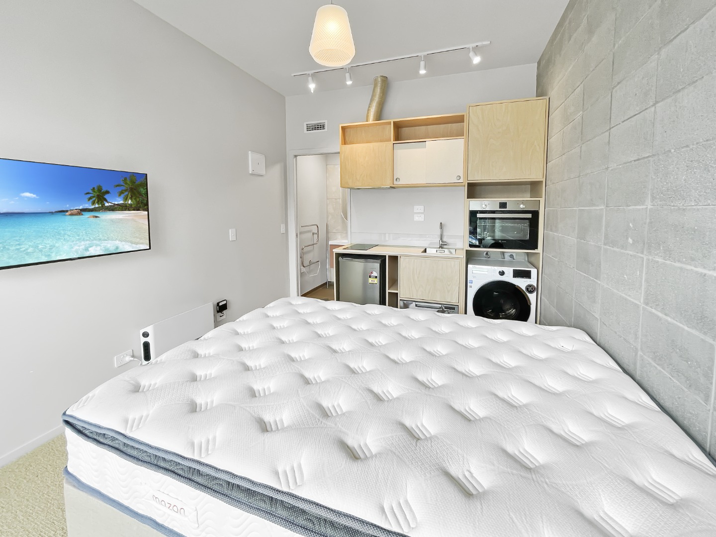 • Furnished with leather couch, TV, queen bed and whiteware.